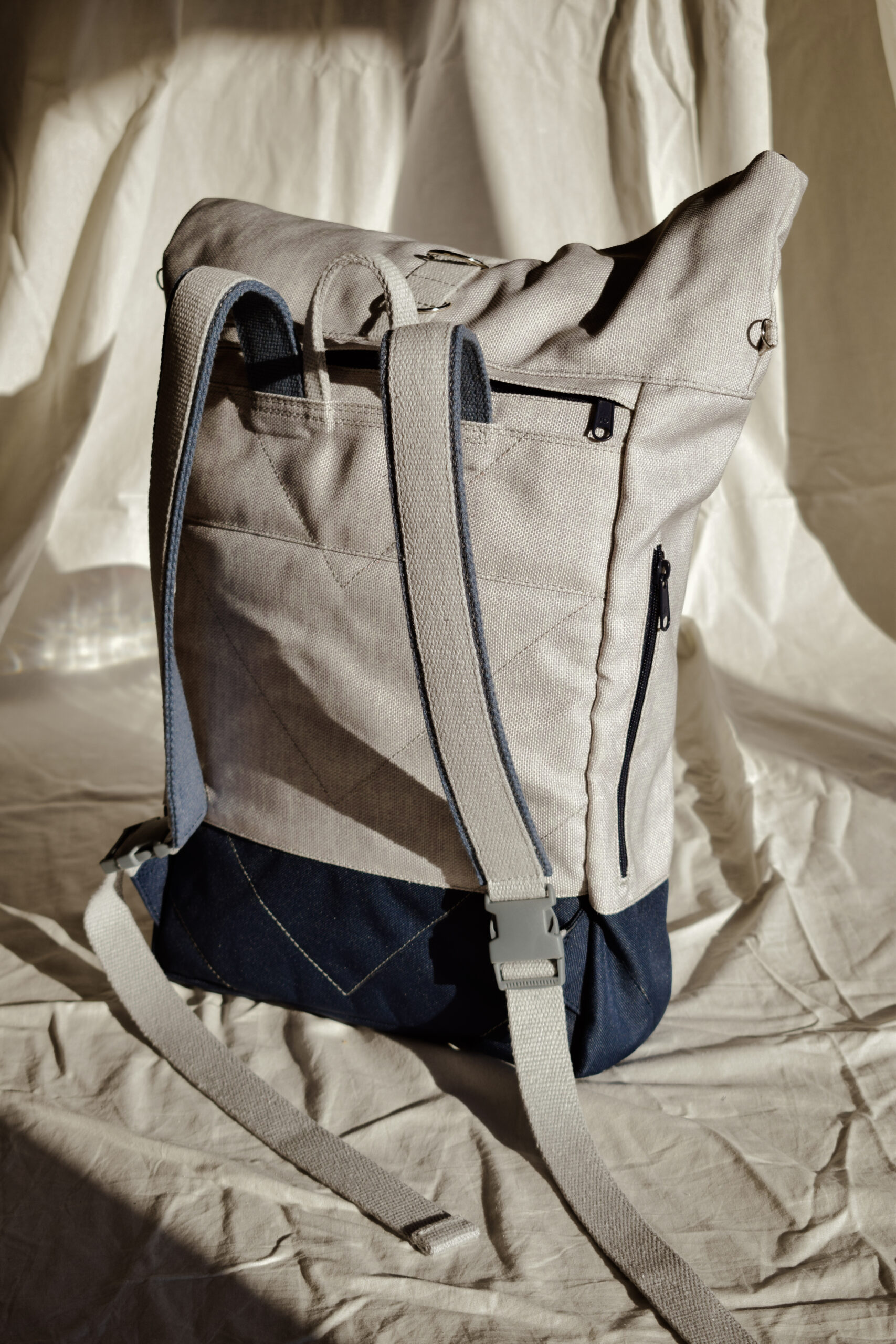 Inchidere: fermoar + roll-top cu curelusa