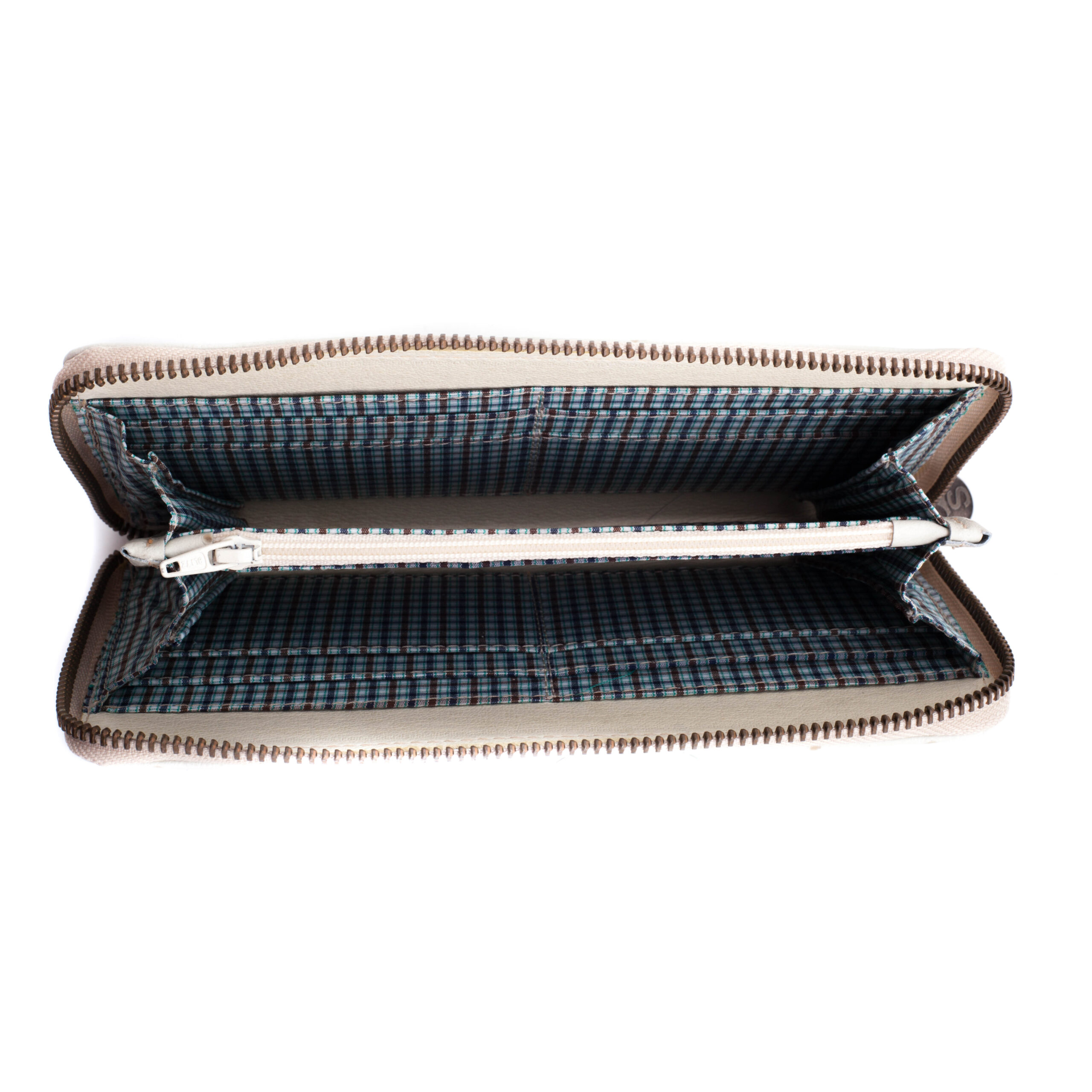 Interiorul este compartimentat inteligent: sloturi pentru carduri, un buzunar separator cu fermoar pentru monede si spatiu generos pentru documente si bancnote.