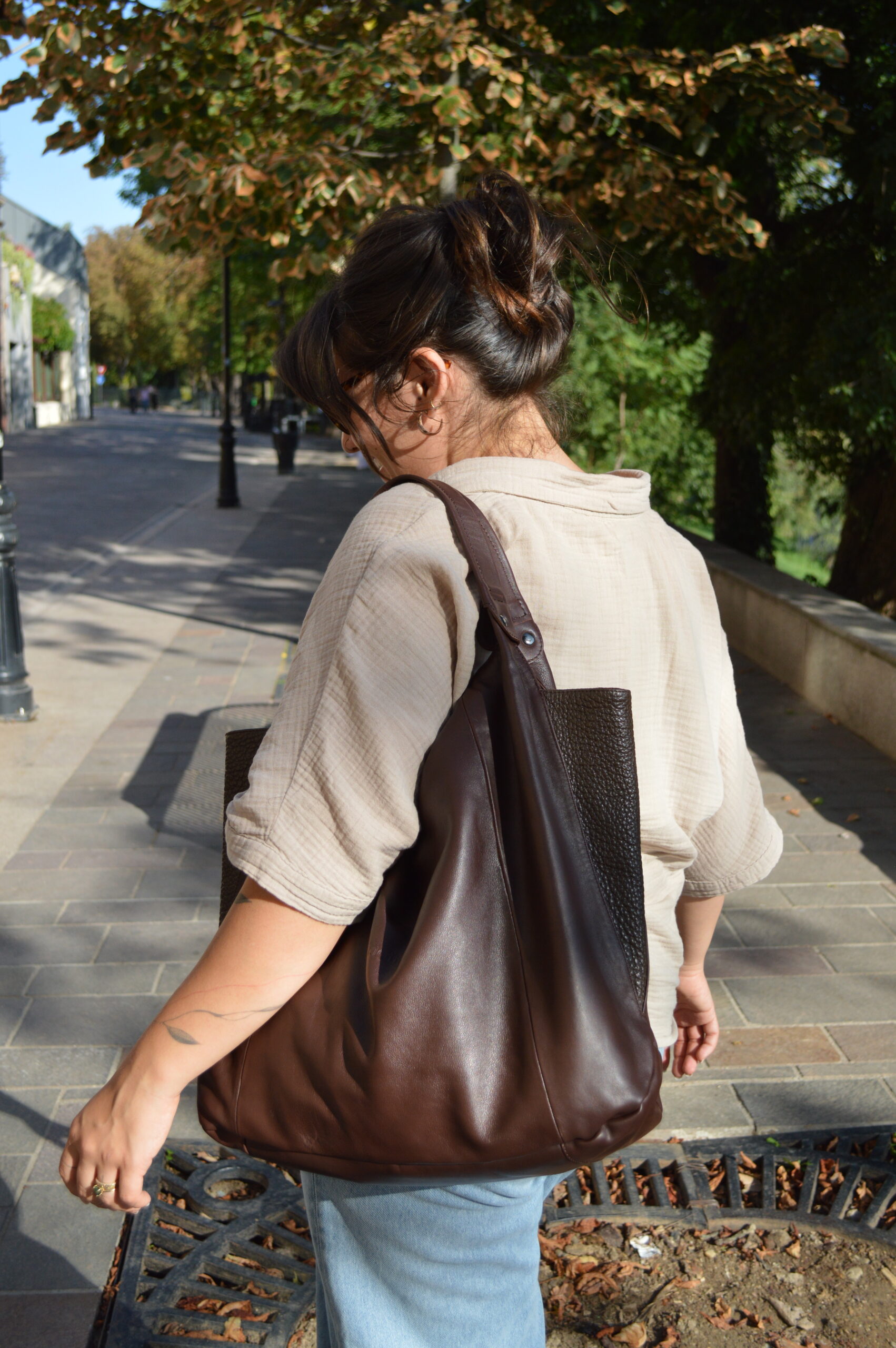 Geanta Anna din piele naturala maro este un tote bag urban si elegant, creat pentru ritmul zilelor active.