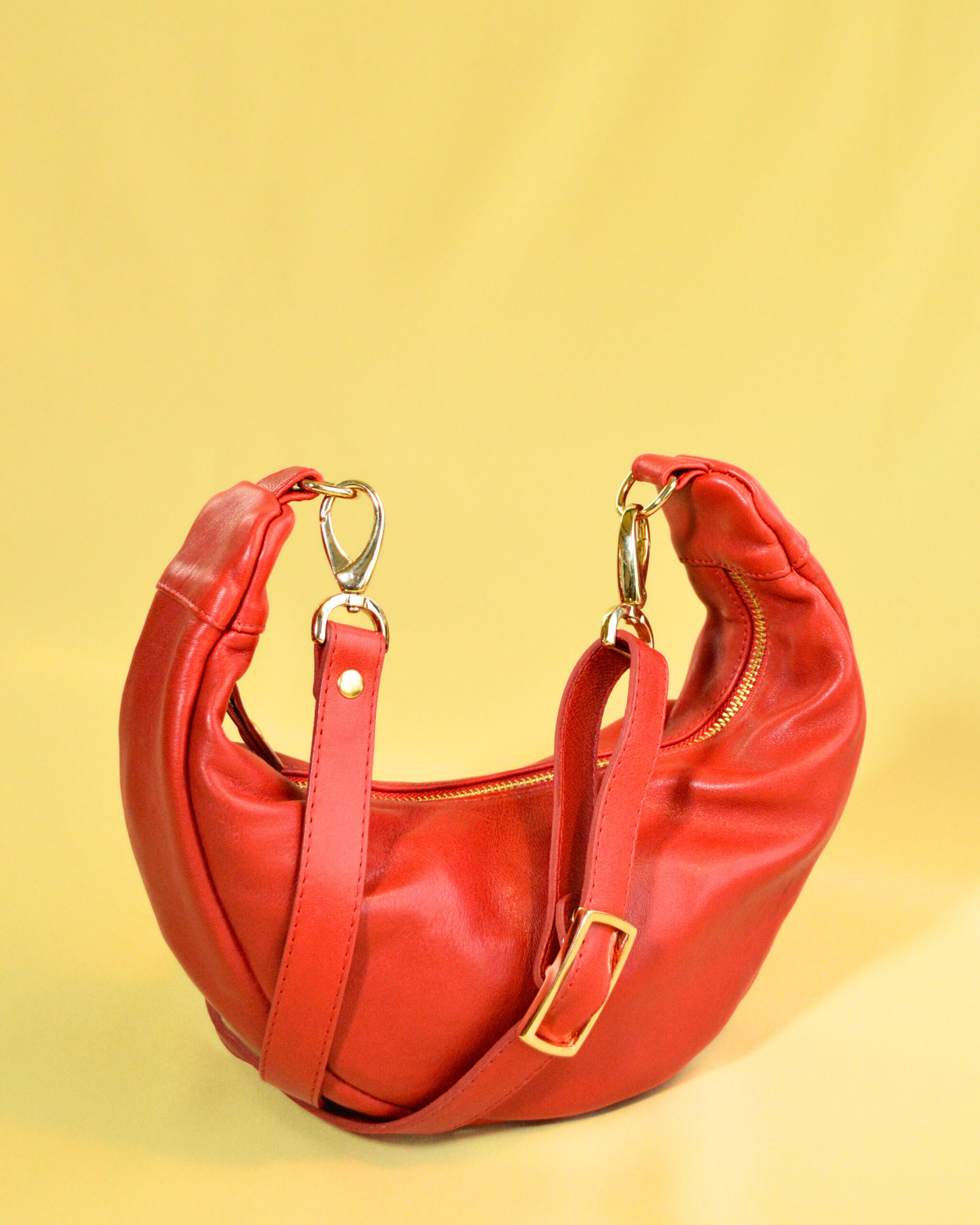 Sonya Mini este un accesoriu versatil, creat pentru ritmul zilnic, o geanta din piele naturala rosie, potrivita pentru persoanele care prefera designul minimalist si functional.