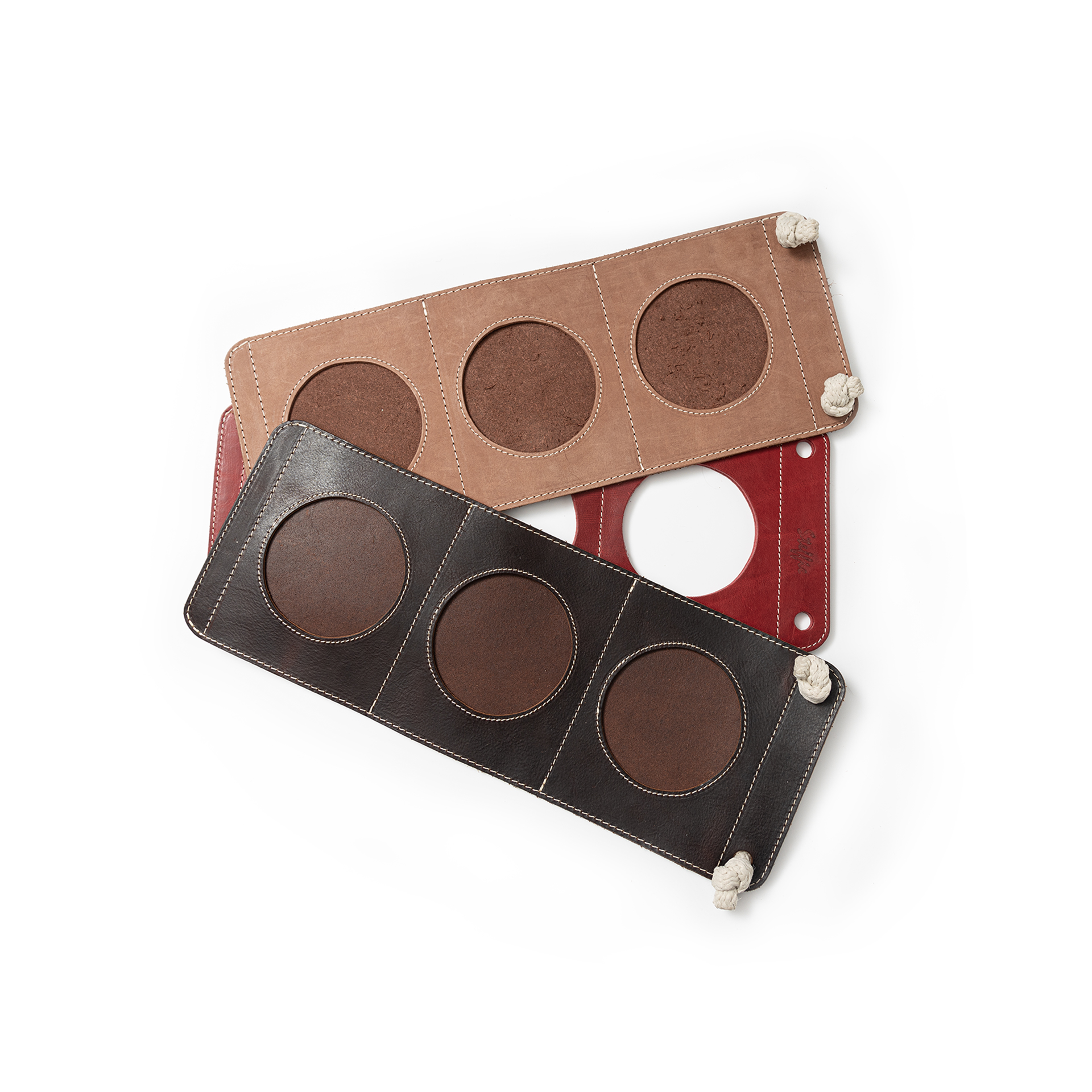 Fantastic si functional: acest support pentru 3 sticle de vin, este perfect pentru colectia ta de vinuri. Este confectionata din piele naturala, tabacita cu tanini naturali, si asigura stabilitate, fara risc de a cadea. Cu un design rustic/ modern poate fi un cadou ideal pentru casa.